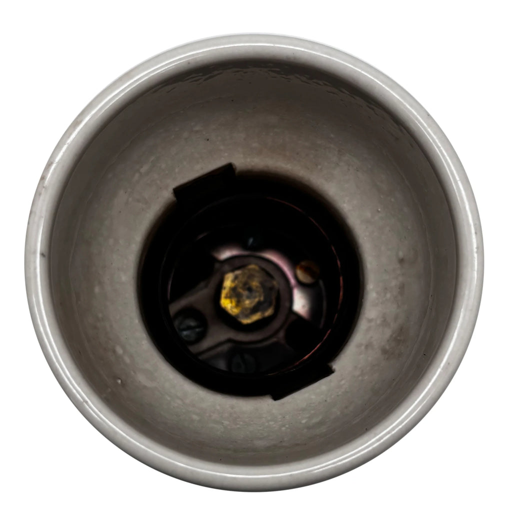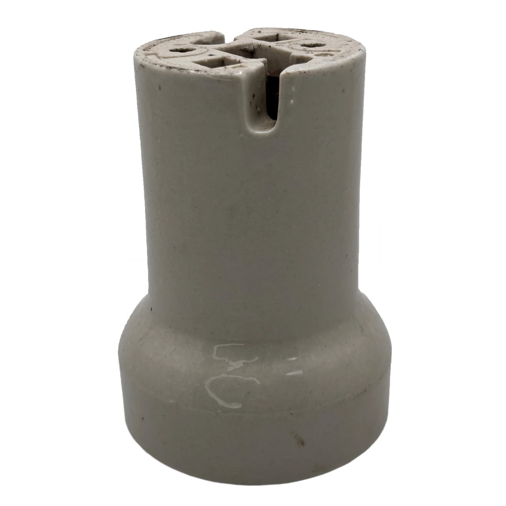 The 889361 model features a compact, yet robust design that allows for seamless integration into a wide range of lighting systems. Its compatibility with various lamp types further increases its versatility, offering flexibility for electricians and lighting engineers in diverse applications. Whether you're upgrading vintage light systems or installing new fixtures, this ceramic receptacle ensures a solid, dependable connection that can endure the test of time, providing both safety and efficiency. Specifications: ES Thread for Bulb/Lamp Approx 40mm E27 66mm Internal 76mm External 103mm Height 57mm it tapers at approx 35mm down from the opening