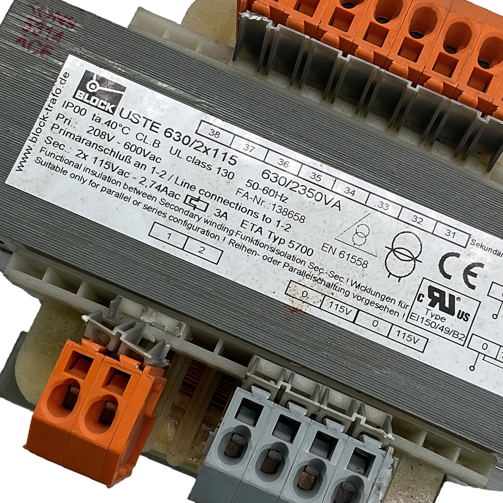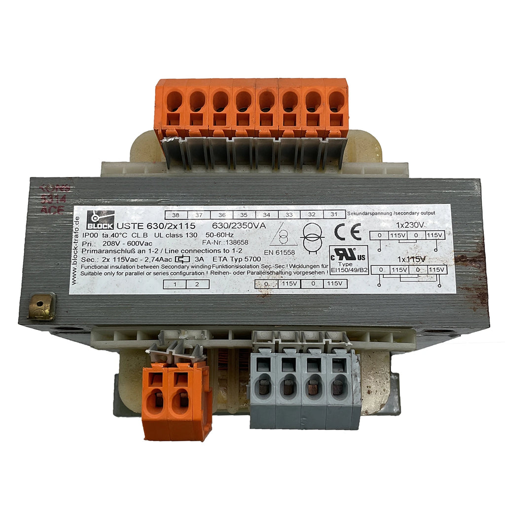 BLOCK Transformer Chassis Mount 208V-600VAC 50/60Hz USTE 630/2X115