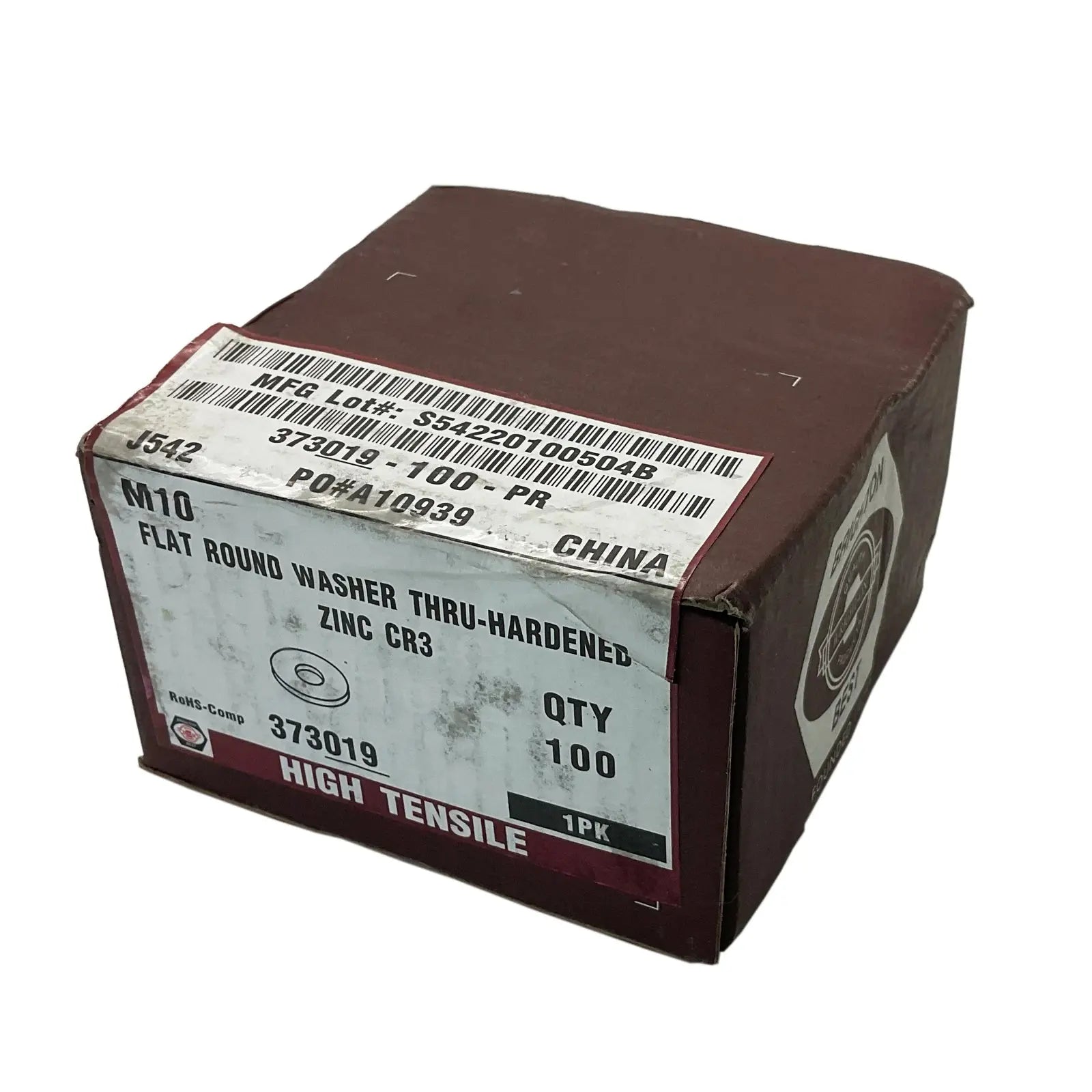 Introducing the Brighton-Best Flat Round Washer Thru-Hardened Zinc 373019, available in a convenient box of 100. This industrial-grade washer is meticulously engineered to meet the stringent requirements of the electrical and manufacturing sectors. Crafted with precision, the washer Features: a thru-hardened construction, ensuring exceptional strength and resilience in demanding applications.