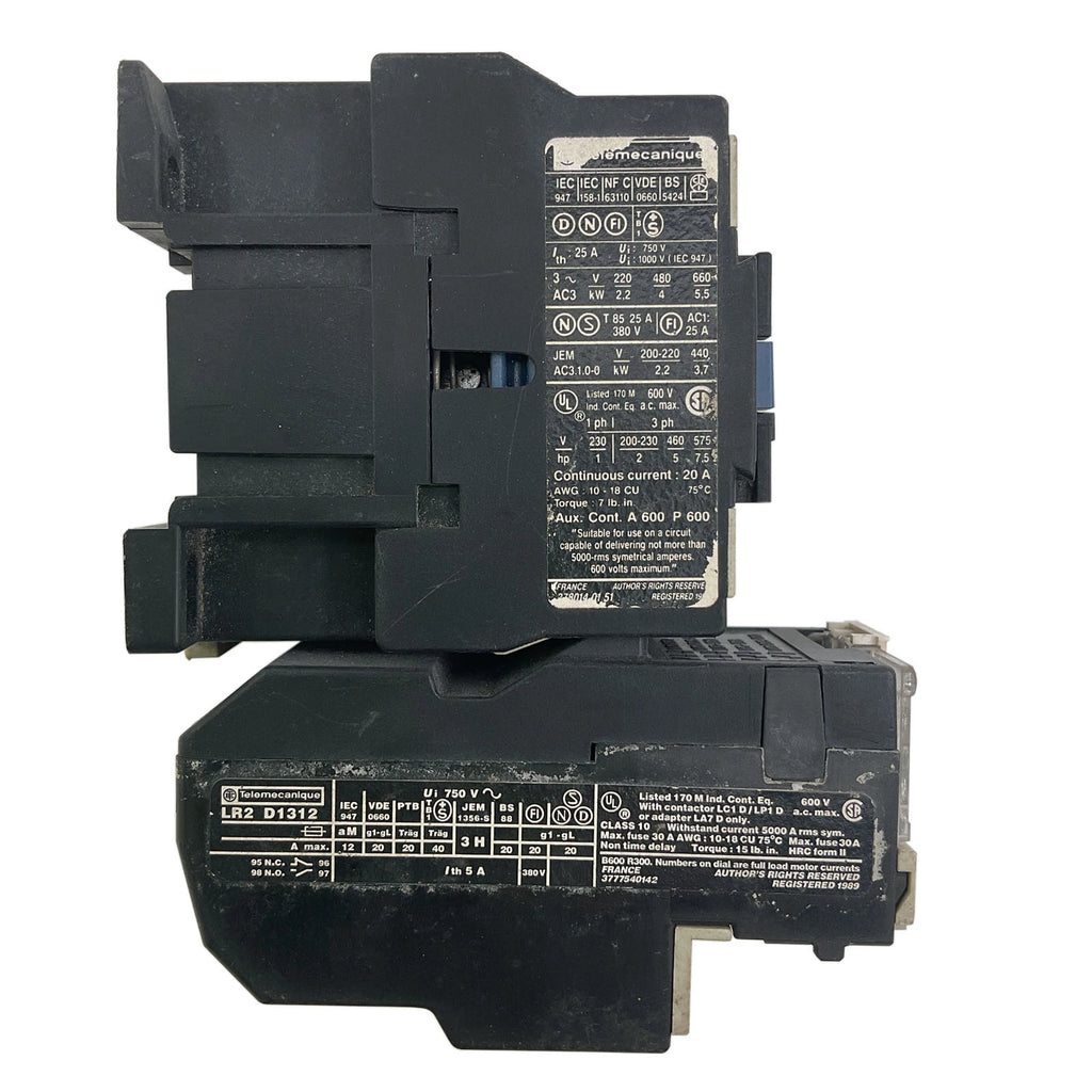 Schneider Electric Contactor with Overload Relay – 25A, 3 Pole, 110V Coil LC1D0910F7 and LR2D1312 Features: